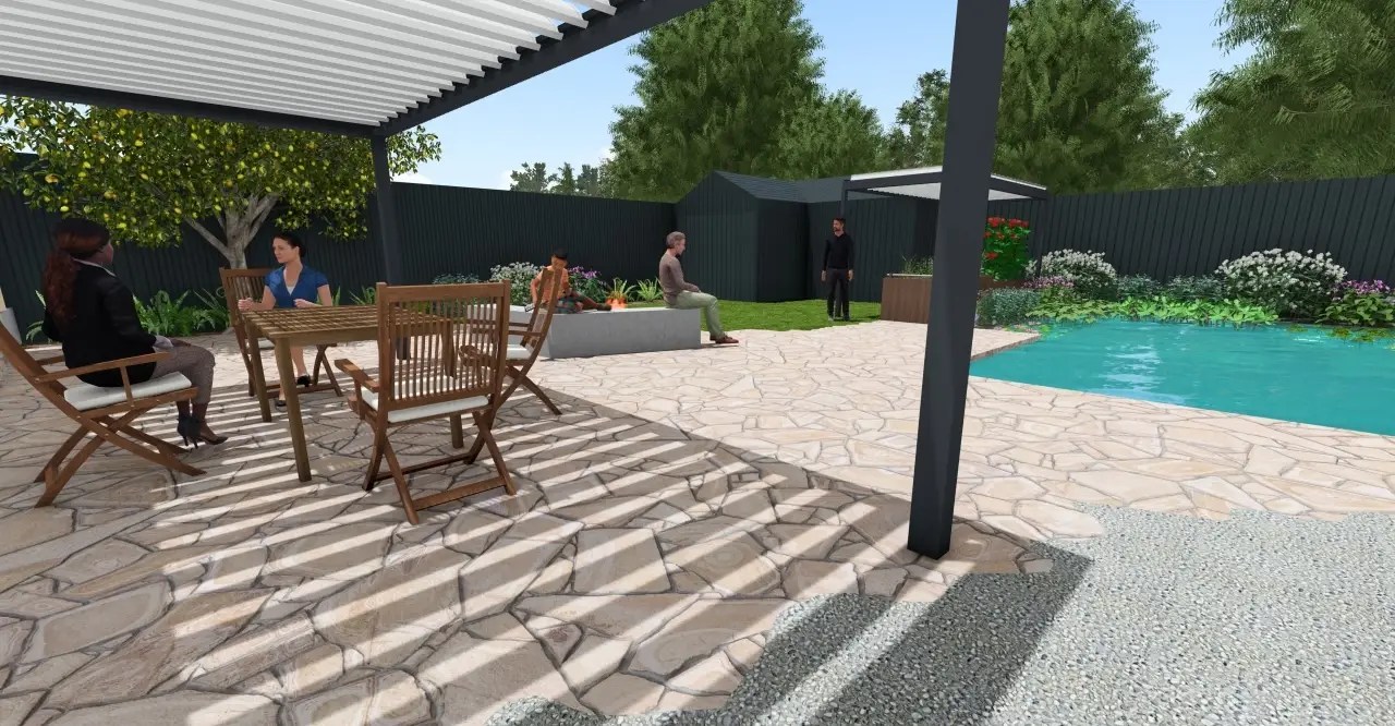 The documentation will cover materials, planting palettes, and finishes, with descriptive annotations to clearly convey the proposed design elements. Our designs are highly visual and schematic, ensuring a clear representation of the design outcome. We will present a range of material options, including natural stone, timber, pool tiles, and concrete. Additionally, lighting design options can be provided at this stage.